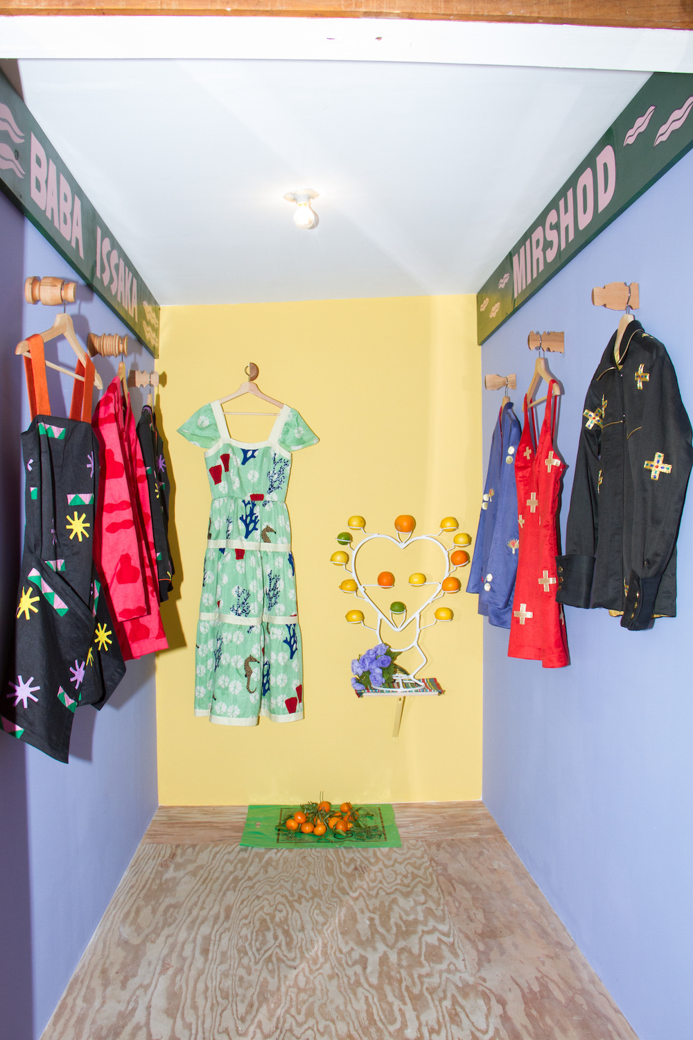 Pieces made with textiles embroidered by Mirshod