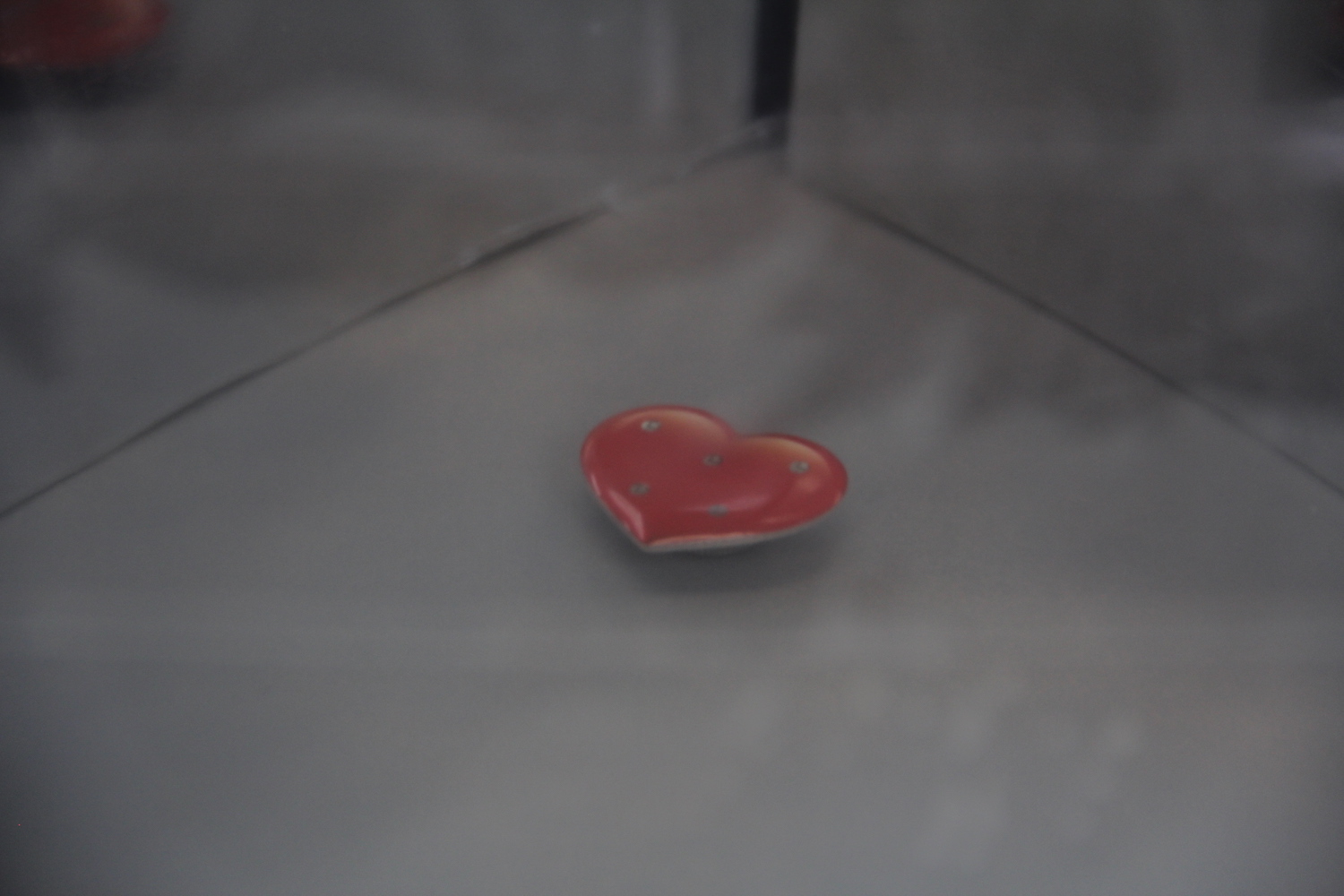pencil on paper, mirror plastic sheet, blinking heart and packing tape
