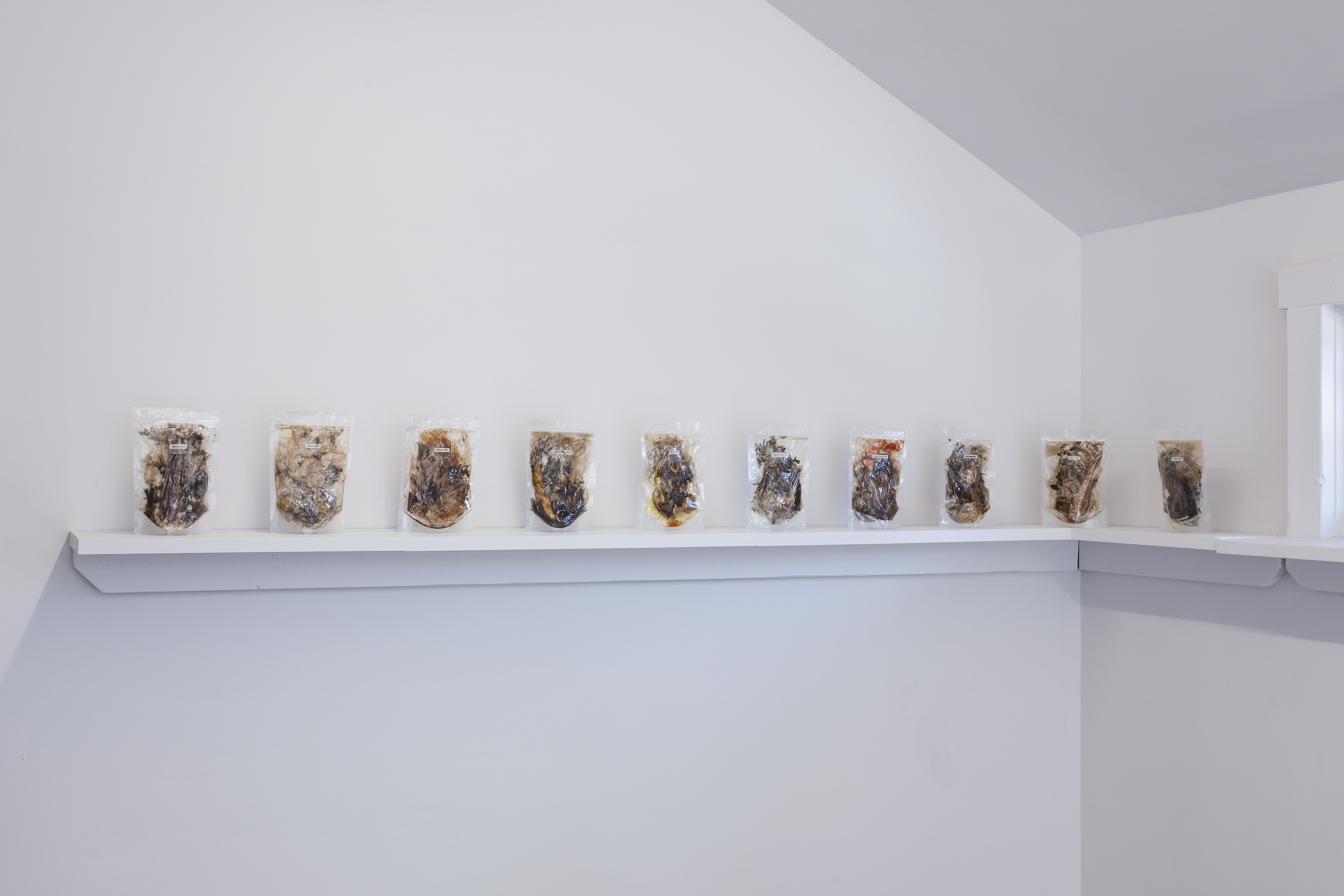 the exhibition features four works: Body Packages, Breastfeeding, Venus, and Shepee