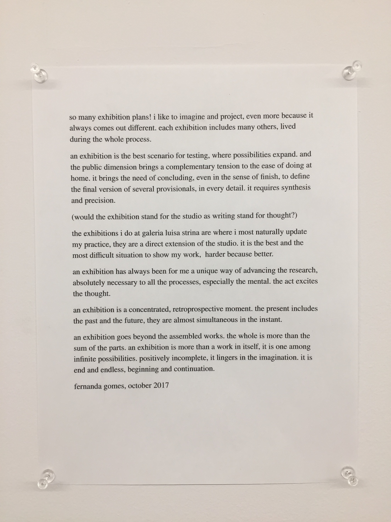printed press release from “Fernanda Gomes” at Galeria Luisa Strina, Sao Paulo